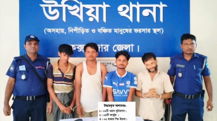 উখিয়া থানা পুলিশের অভিযানে ২টি আ’গ্নে’য়া’স্ত্র, ৫টি কার্তুজ ও ২ হাজার পিচ ই’য়া’বাসহ ৪জন মা’দ’ক ব্যবসায়ী আটক।