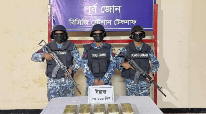 কোস্ট গার্ড অভিযানে টেকনাফ পৌরসভার এলাকায় মালিকবিহীন ২ কোটি ৫০ লক্ষ টাকা মূল্যের ইয়াবা উদ্ধার