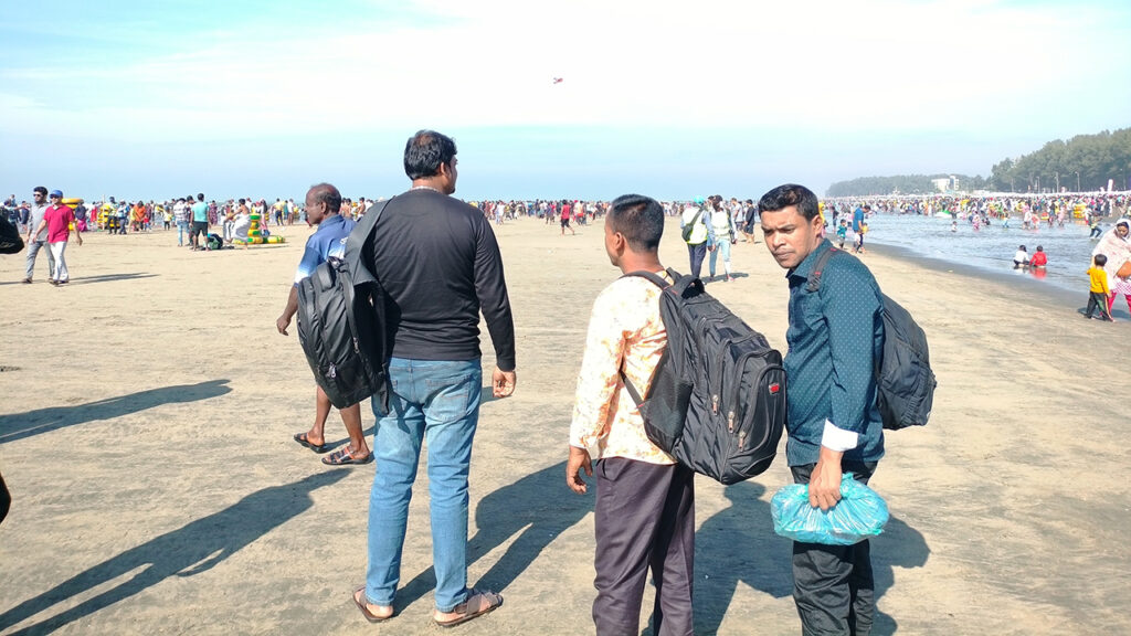শুক্রবার (২০ ডিসেম্বর) সকাল থেকে সৈকতের বিভিন্ন পয়েন্ট ঘুরে দেখা গেছে, বালিয়াড়িতে ভিড় করেছে লাখো পর্যটক। বালিয়াড়ির সামনে নীল জলরাশিতেও মানুষের ভিড়। সবাই মেতেছেন বাঁধভাঙা আনন্দ-উল্লাসে।