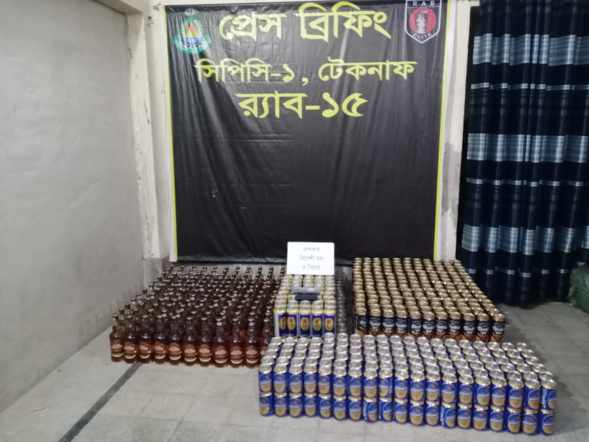 টেকনাফে র্যাবের অভিযানে বিপুল পরিমাণ মদ-বিয়ার উদ্ধার, আটক-৩
