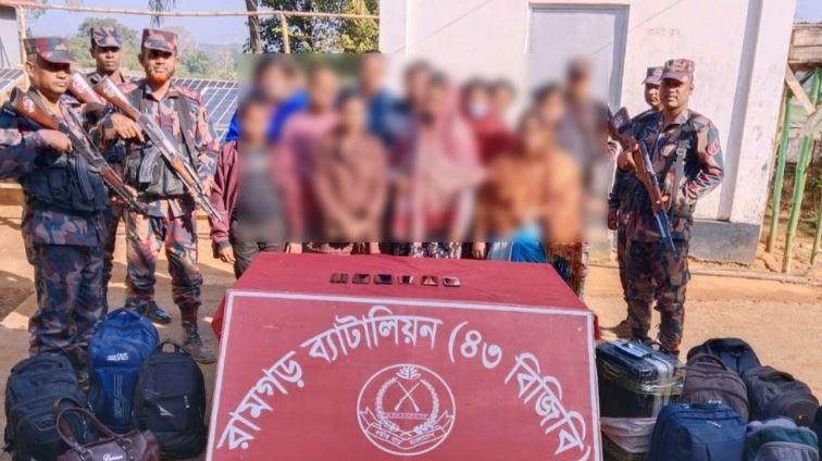 অবৈধপথে ভারতে অনুপ্রবেশের চেষ্টাকালে ১২ বাংলাদেশি নাগরিককে আটক করেছে বিজিবি। মঙ্গলবার রাতে রামগড় ব্যাটালিয়ন (৪৩ বিজিবি) এর নলুয়াটিলা বিওপির ভারত-বাংলাদেশ সীমান্ত থেকে তাদের আটক করা হয়। বিজিবি জানায়, গোপন সংবাদের ভিত্তিতে রামগড় ৪৩ বিজিবির নলুয়াটিলা বিওপির নায়েক সুবেদার মো. ফরিদুল ইসলামের নেতৃত্বে একটি টহল দল অবৈধভাবে সীমান্ত পাড়ি দেওয়ার সময় ১২ জন সনাতনধর্মী বাংলাদেশি নাগরিক…