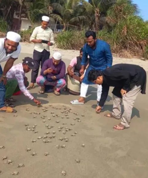 সেন্ট মার্টিনে জন্ম নেওয়া ১৮৩টি কচ্ছপের বাচ্চা সাগরে অবমুক্ত করা হচ্ছে।