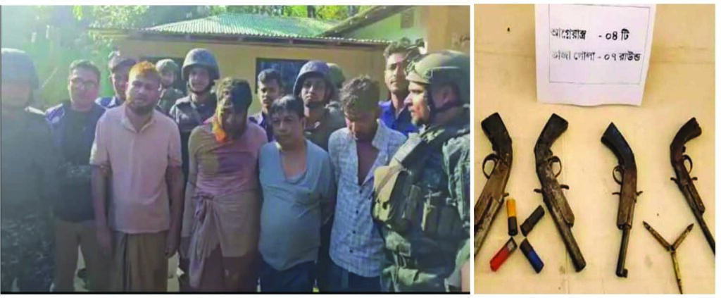 কক্সবাজারের টেকনাফের হোয়াইক্যং নৌবাহিনী ও পুলিশ অভিযান চালিয়ে চারটি আগ্নেয়াস্ত্র ও সাত রাউন্ড গুলিসহ তিনজন গ্রেফতার করা হয়েছে। অভিযান চলাকালীন নরসিংদী জেলার এক অপহৃত ভিকটিমকে উদ্ধার করা হয়।