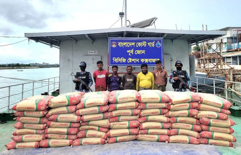 মায়ানমারের রাখাইন প্রদেশে শুল্ক-কর ফাঁকি দিয়ে অবৈধভাবে পাচারকালে বিপুল পরিমাণ সিমেন্টসহ ৫ জন পাচারকারীকে আটক করেছে কোস্ট গার্ড।