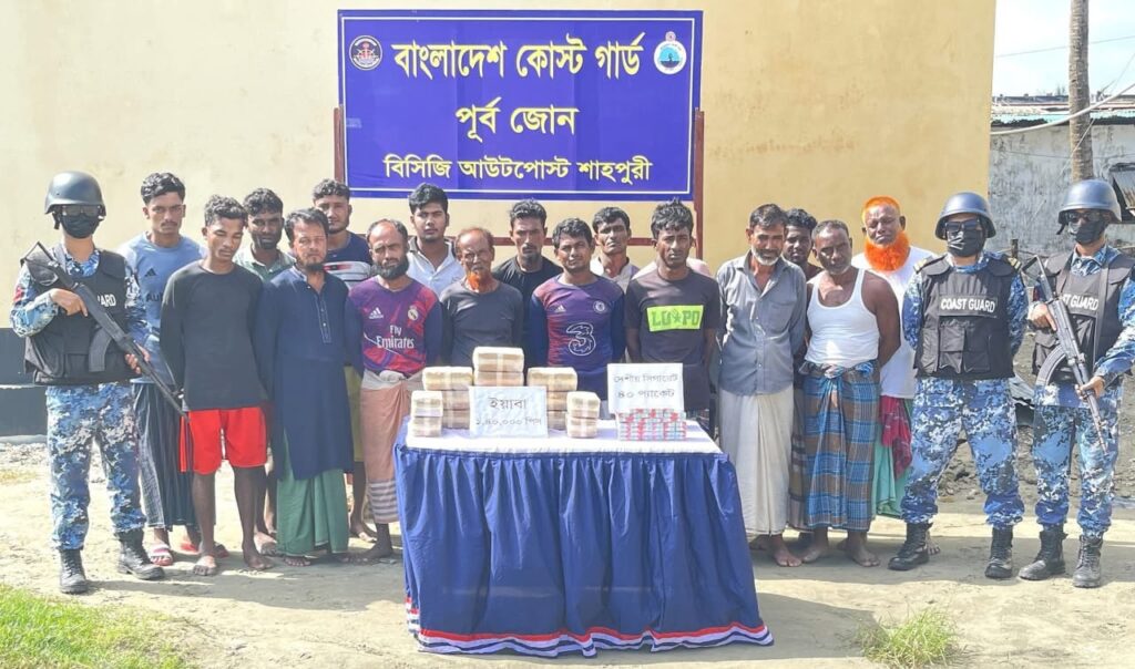 তিনি বলেন, গোপন সংবাদের ভিত্তিতে শুক্রবার মধ্যরাত ১টার দিকে কোস্টগার্ড স্টেশন টেকনাফ ও আউটপোস্ট শাহপরী টেকনাফ সেন্টমার্টিন সংলগ্ন সমুদ্র এলাকায় একটি বিশেষ অভিযান পরিচালনা করা হয়। অভিযান চলাকালীন ওই এলাকায় দুটি ইঞ্জিনচালিত কাঠের বোটের গতিবিধি সন্দেহজনক মনে হলে অভিযানিক দল বোট দুটিকে থামার সংকেত দিলে কোস্টগার্ডের উপস্থিতি বুঝতে পেয়ে গভীর সমুদ্রে পালিয়ে যাওয়ার চেষ্টা করে। পরবর্তীতে ঘণ্টাব্যাপী ধাওয়া করে বোট দুটিকে গ্রেফতার করা হয়। এসময় তল্লাশি চালিয়ে প্রায় ৭ কোটি ২ হাজার টাকা মূল্যের ১ লাখ ৪০ হাজার পিস ইয়াবা ও ৪০ প্যাকেট ম্যারেজ সিগারেটসহ ১৭ জন মাদক পাচারকারীকে গ্রেফতার করা হয়।