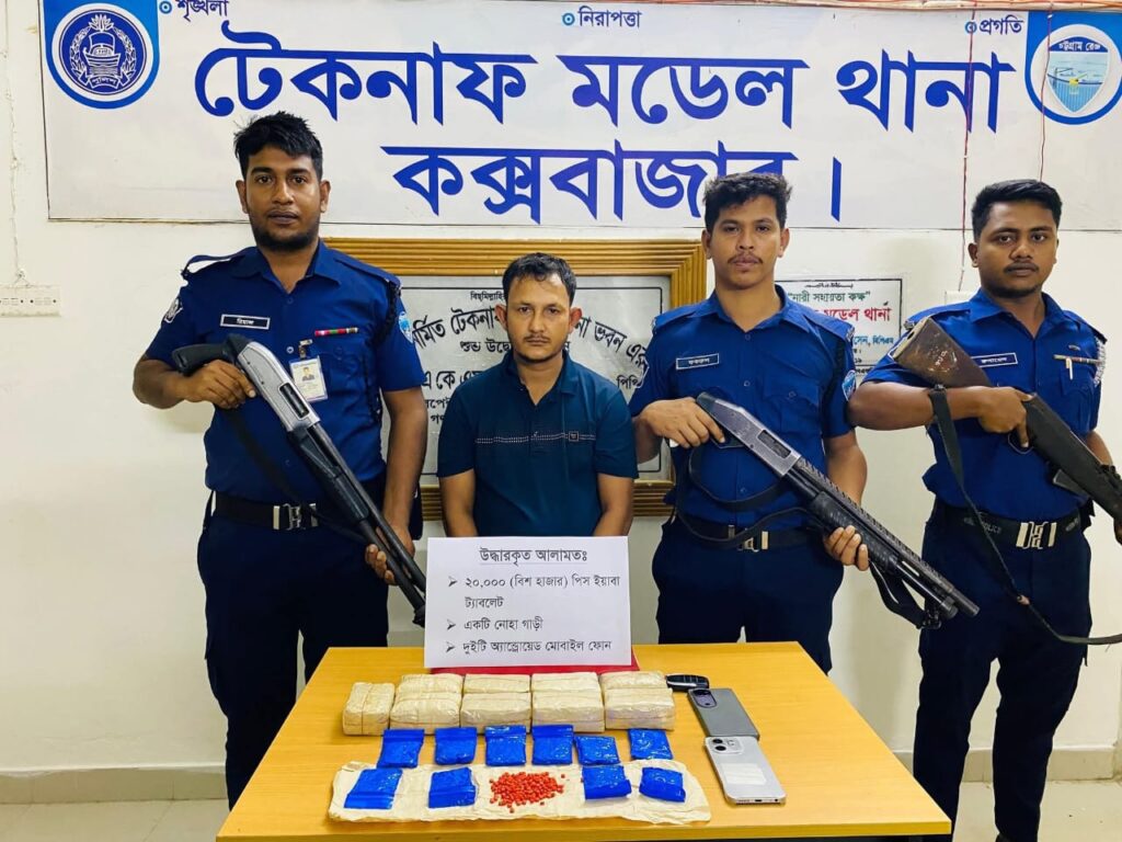 কক্সবাজার টেকনাফ মডেল থানা পুলিশ বিশেষ অভিযান চালিয়ে ২০ হাজার পিস ইয়াবা উদ্ধার করেছে। এ সময় ১টি নোহা গাড়ী ও ২টি মোবাইল ফোন জব্দের পাশাপাশি পাচার কারিকে আটক করেছে। সৈয়দ নুর প্রকাশ নুরুল আমিন প্রকাশ নুরু ড্রাইভার (৪০) হোয়াইক্যং ইউপির কাঞ্জর পাড়া ৫নং ওয়ার্ডের বাসীন্দা মৃত কবির আহমদের ছেলে। বুধবার রাতে (৩১ জুলাই) টেকনাফ মডেল থানার ওসি গিয়াস উদ্দিন বিষয়টি নিশ্চিত করেছেন।তিনি জানান, ৩১ জুলাই রাত অনুমান ৩.৩০ ঘটিকার সময় এসআই (নিরস্ত্র)/আব্দুস সালাম সঙ্গীয় অফিসার ও ফোর্সসহ অভিযান পরিচালনা কালে টেকনাফেন সদর ইউপিস্থ মহেশখালীয়া পাড়া ঘাট সংলগ্ন টেকনাফ টু কক্সবাজার গামী পাকা রাস্তার উপর হতে সৈয়দ নুর প্রকাশ নুরুল আমিন প্রকাশ নুরু ড্রাইভার (৪০) এর চালিত নোহা গাড়ীর পিছনের সিটের ডান পাশের বডির কভারের ভিতর বিশেষ কায়দায় রক্ষিত ২০ হাজার পিস ইয়াবা ট্যাবলেট উদ্ধার করা হয়। পরে পাচারে জড়িত থাকার অপরাধে ১ টি নোহা গাড়ি ও দুইটি অ্যান্ড্রোয়েড মোবাইল ফোন উদ্ধার পূর্বক জব্দ করা হয়। উক্ত বিষয়ে টেকনাফ মডেল থানায় মাদকদ্রব্য নিয়ন্ত্রণ আইনে মামলক রুজু করা হয়েছে। আটককৃত আসামীর বিরুদ্ধে পূর্বেও ৩টি মাদক মামলা রয়েছে