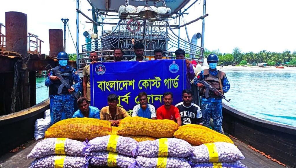 অভিযান চলাকালে একটি সন্দেহজনক ফিশিং বোটে তল্লাশি চালিয়ে অবৈধভাবে পাচারকালে প্রায় ৭ লক্ষ টাকা মূল্যের ৪০০ বস্তা আলু, ৪০ বস্তা রসুনসহ পাচার কাজে ব্যবহৃত বোট ও ১০ জন পাচারকারীকে আটক করা হয়।