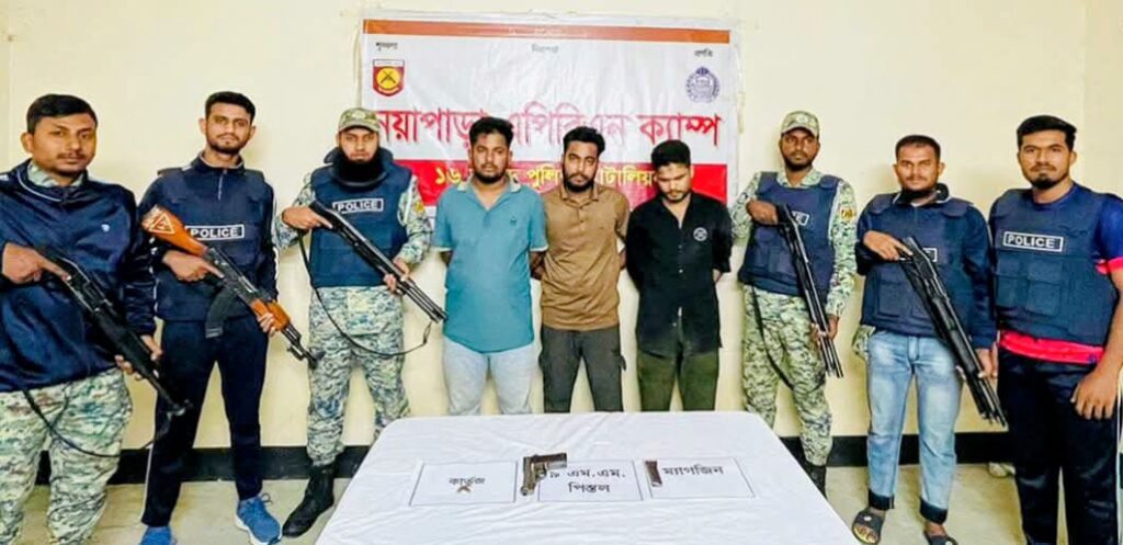 কক্সবাজারের টেকনাফের হ্নীলা ইউনিয়নের নয়াপাড়া রেজিস্টার্ড রোহিঙ্গা ক্যাম্পে ডাকাতির প্রস্তুতিকালে একটি বিদেশি অস্ত্র ও গুলিসহ তিন রোহিঙ্গা ডাকাতকে গ্রেপ্তার করেছে যৌথ বাহিনী।