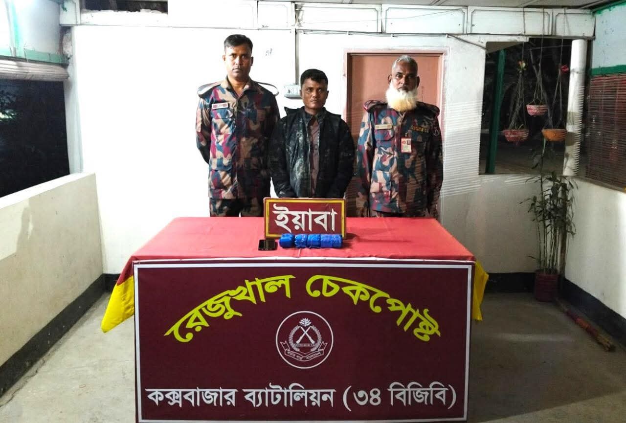 অদ্য ২৪ ডিসেম্বর ২০২৫ তারিখ ২০৪০ ঘটিকায় কক্সবাজার ব্যাটালিয়ন (৩৪ বিজিবি) এর অধিনস্থ রেজুখাল চেকপোষ্টের একটি বিশেষ টহলদল কর্তৃক চেকপোস্ট হতে আনুমানিক ৭০০ গজ দক্ষিণ-পূর্ব দিকে খালের পাড় নামক স্থানে মাদকবিরোধী অভিযান পরিচালনা করে ১০,০০০ পিস বার্মিজ ইয়াবা ট্যাবলেটসহ ০১ জন আসামী মোঃ হাসেম (৩৫), পিতা-ছলিম উল্লাহ, গ্রাম-উত্তর সোনারপাড়া, পোষ্ট-ইনানী, থানা-উখিয়া এবং জেলা-কক্সবাজারকে আটক করতে সক্ষম হয়েছে। এছাড়াও মাদকদ্রব্য পাচারে ব্যবহৃত মোবাইল ফোন-০১টি জব্দ করতে সক্ষম হয়েছে। এ ব্যাপারে পরবর্তী আইনী কার্যক্রম পক্রিয়াধীন।