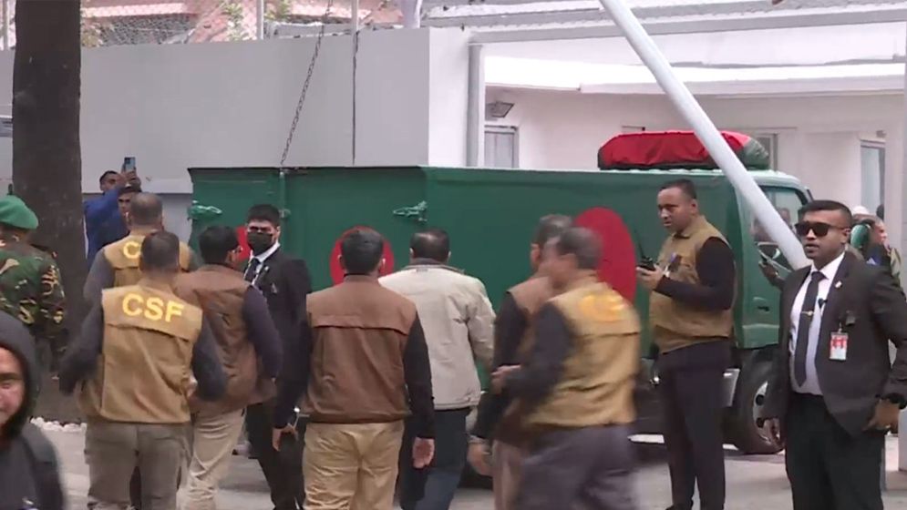 বুধবার সকাল ৯টা ১৫ মিনিটে তাকে বহনকারী বাংলাদেশের পতাকায় মোড়ানো একটি গাড়িটি ফিরোজায় প্রবেশ করে।
