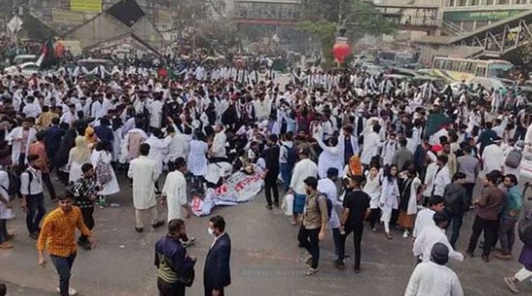 ৪ দফা দাবিতে শাহবাগে ম্যাটস শিক্ষার্থীদের অবস্থান ও বিক্ষোভ