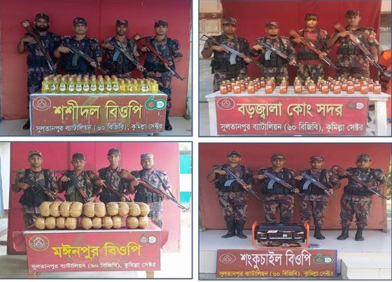 কুমিল্লায় ৬০ লাখ টাকার মাদক ও অবৈধ ভারতীয় মালামাল জব্দ