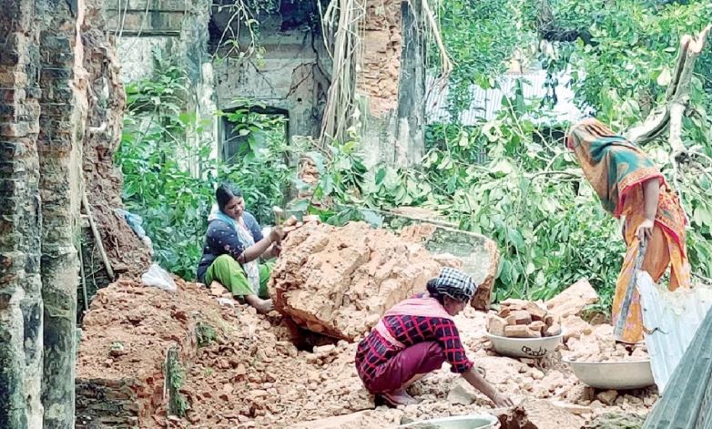 মজিদপুর জমিদারবাড়ির ভবনে ধস, ইট-সুরকি নিয়ে যাচ্ছে স্থানীয়রা