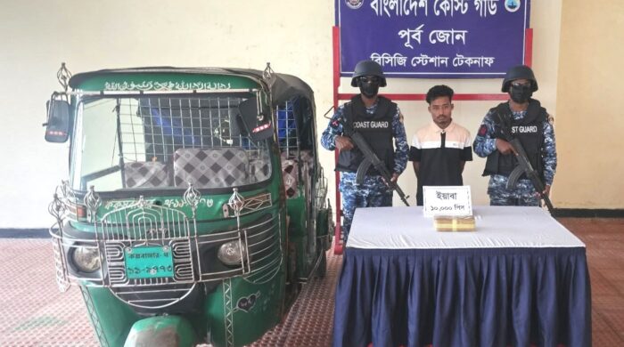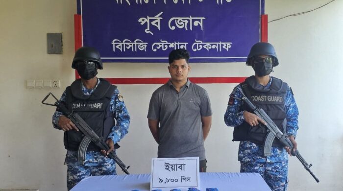 টেকনাফে ৯ হাজার ৮০০পিস ই’য়া’বা’সহ কোস্ট গার্ডের হাতে এক যুবক আটক।