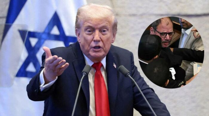 ট্রাম্পের ভাষণ চলাকালে ইসরাইলের পার্লামেন্টে হট্টগোল